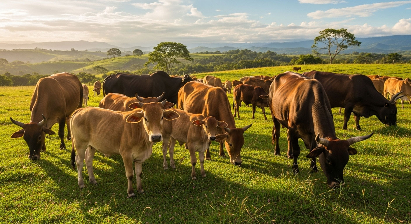 Criamos principalmente ganado Cebú, especialmente la raza Brahman, por su rusticidad, resistencia al calor y excelente adaptación a nuestras condiciones. Son animales nobles, fuertes y eficientes, que responden muy bien tanto en ganancia de peso como en calidad de carne.